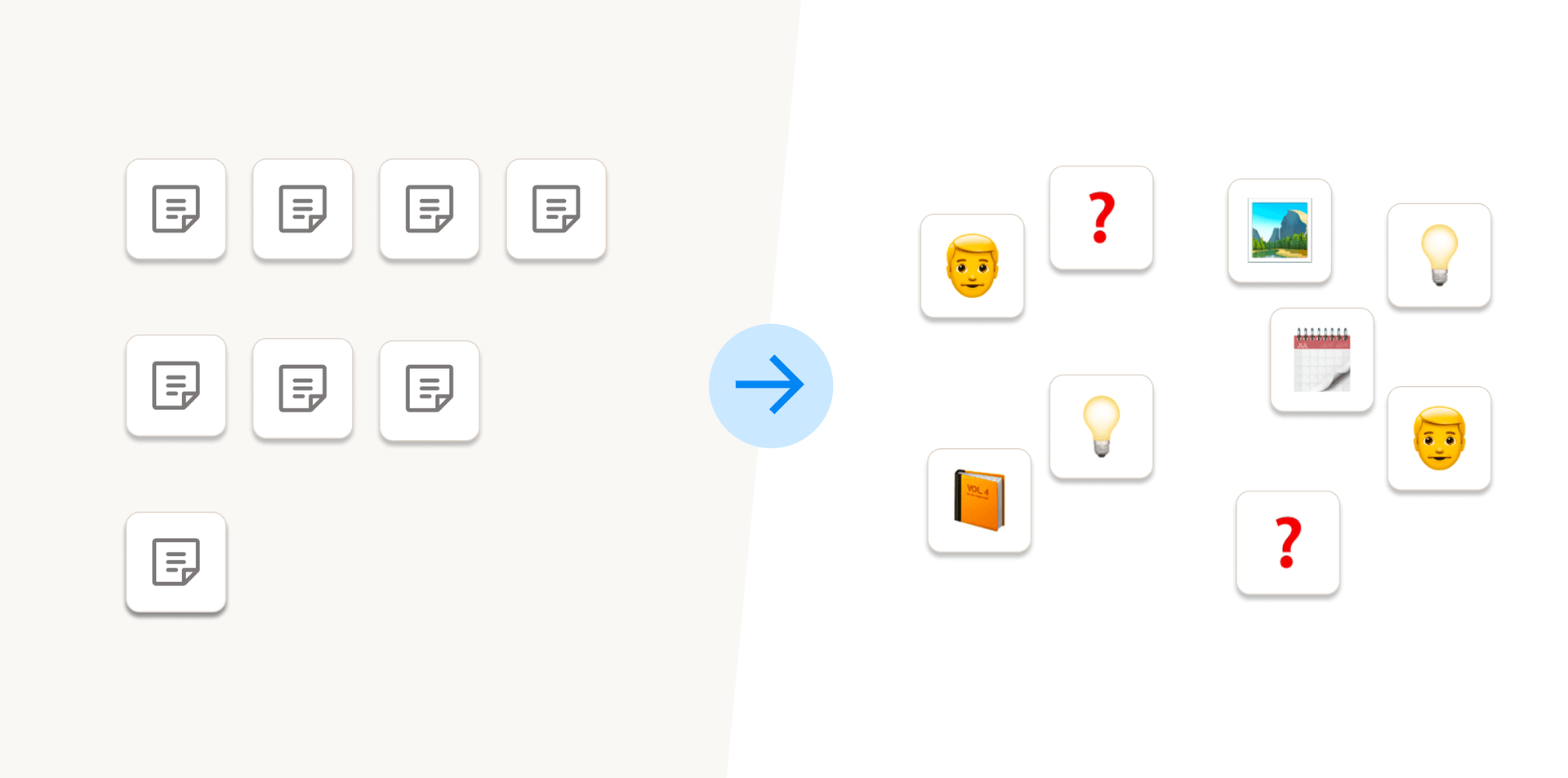 - All your notes are interconnected and organize themselves in a network of ideas. You're not tied to strict hierarchies and tables.