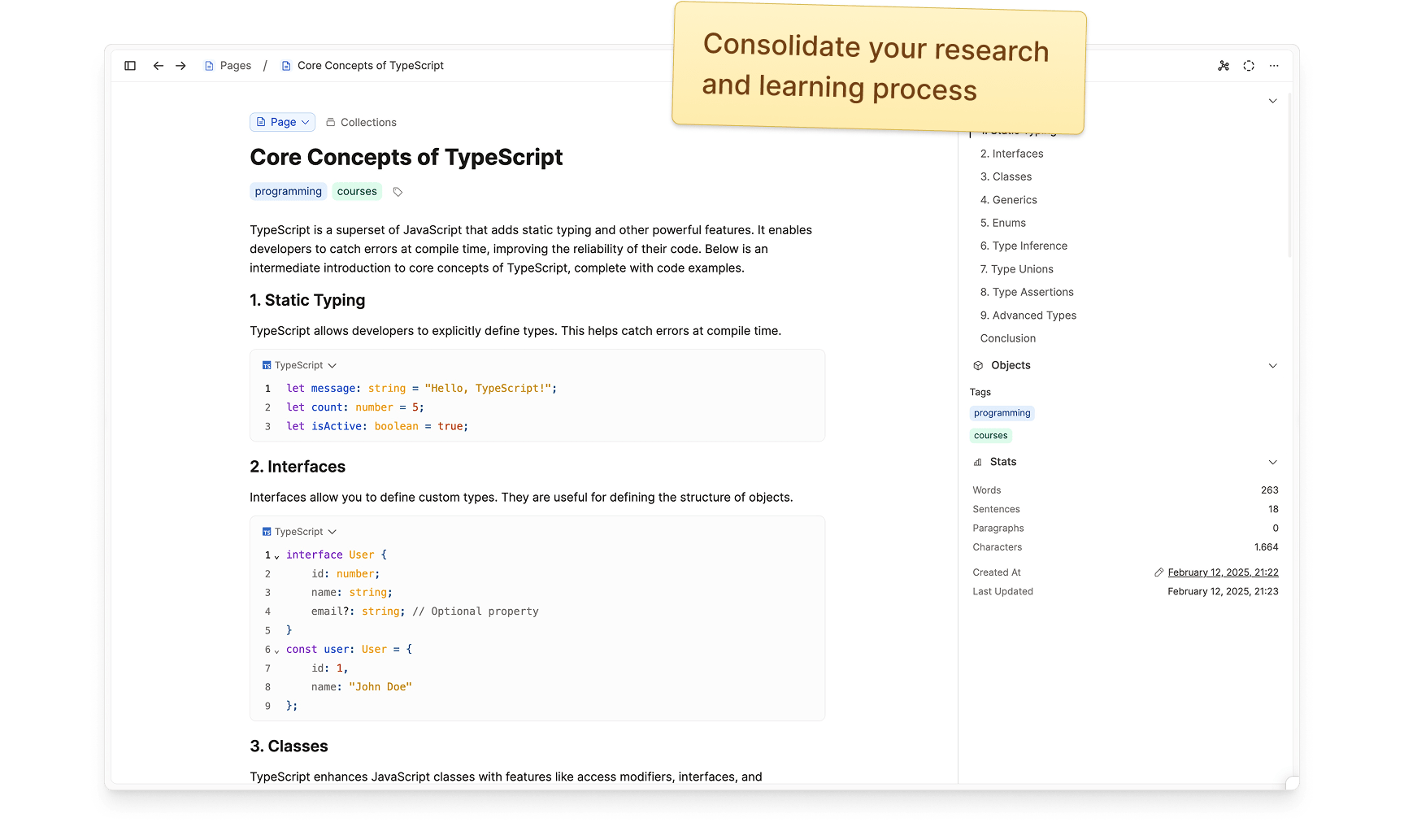 Throw your code ideas, inspiration and notes into Capacities. Use Capacities to keep track of all your resources, and build your very own reusable snippet repository. You'll never lose an idea or resource again.