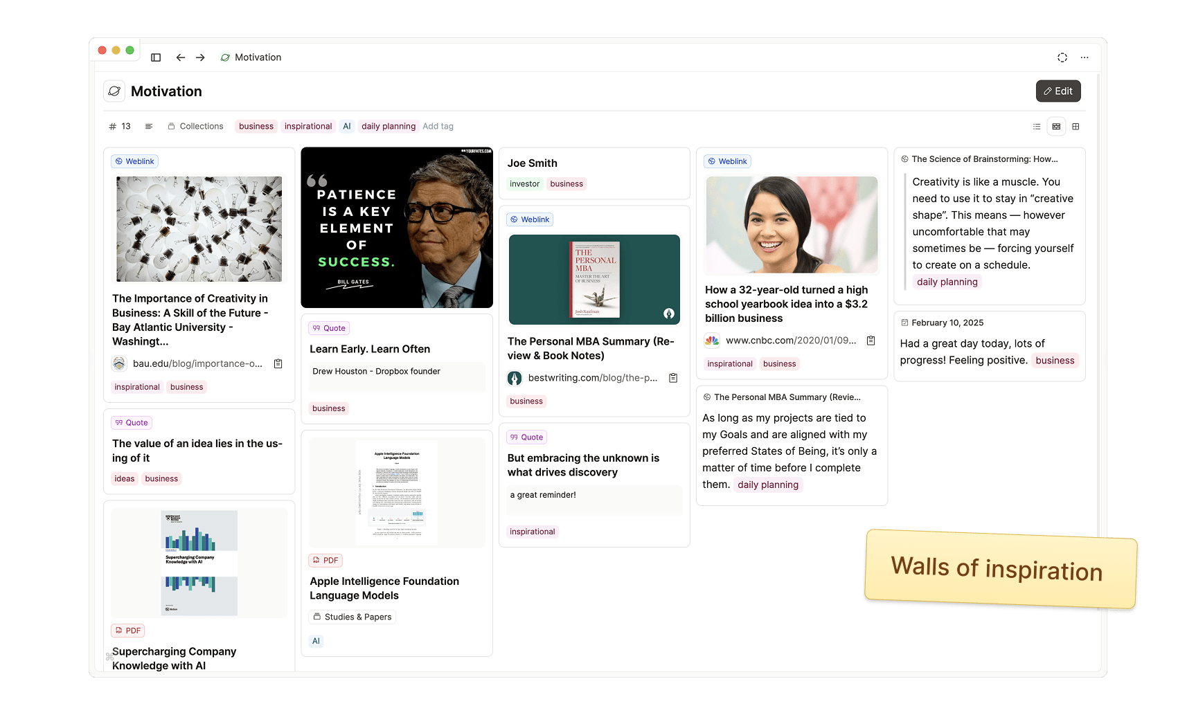 You never know where that next big idea will come from. Pull all your inspiration into Capacities and trust that you will find things right when you need them.