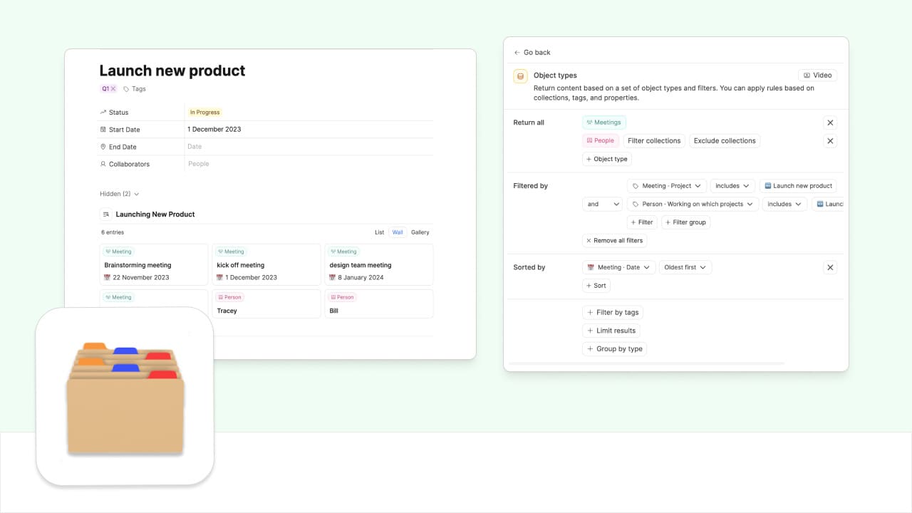 Object queries return content based on a set of object types and optional filters. You can apply rules based on collections, tags, and properties which means the possibilities are endless.